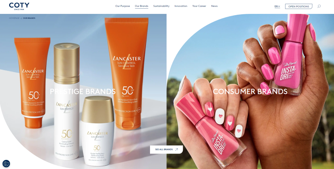 今朝,科蒂旗下营业重要分为高端美妆部分及公共美妆部分。高端美妆部分旗下运营包罗Gucci、Burberry、Jil Sander及Hugo Boss等豪侈品牌,公共美妆部分则涵盖Covergirl、蜜丝佛陀及Ri妹妹el London等知名品牌。